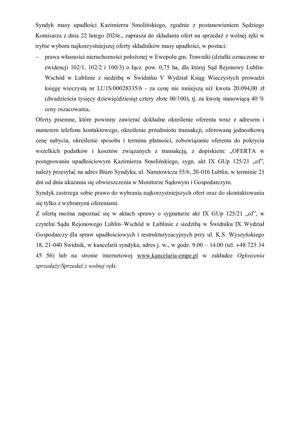 Syndyk sprzeda nieruchomość