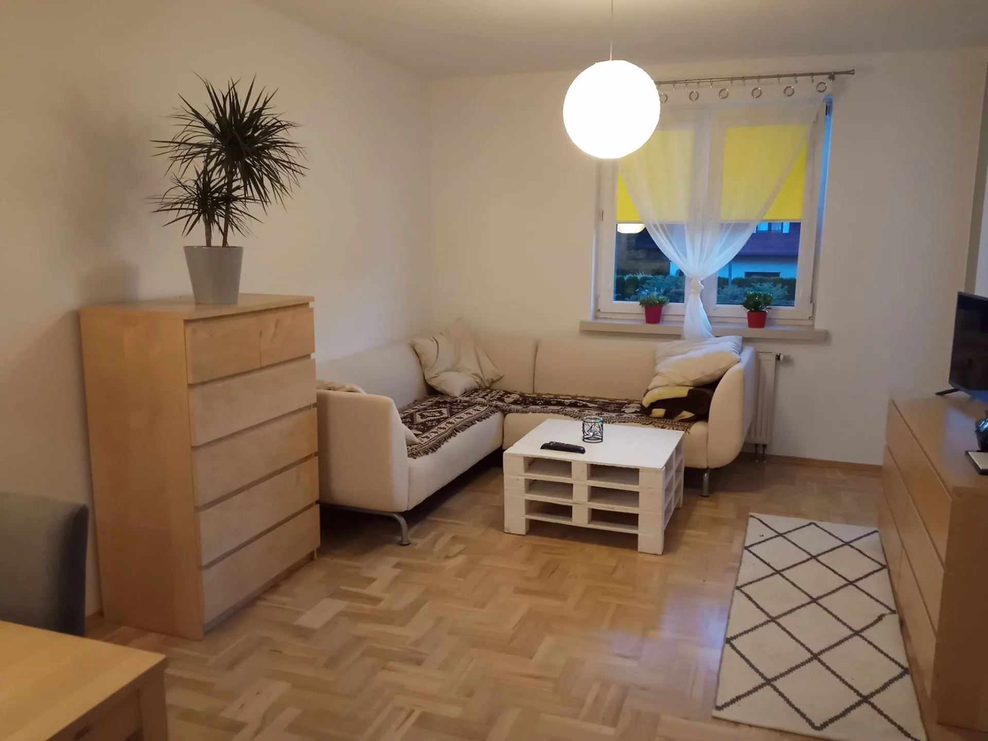Mieszkanie po remoncie. Narożne z dużą ilością światła. Umeblowane- odnowione -nowe podlogi. Wymienione szafki i zmywarka. Nowy prysznic 1 pokój/Salon z kuchnią 2 pokój/Sypialnia Korytarz z dużą szafa w zabudowie Łazienka z prysznicem pralka Balkon z widokiem na panoramę Warszawy Garaż płatny dodatkowo Kontakt telefoniczny preferowany